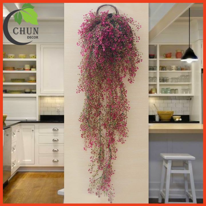Giới thiệu Cây giả - Chùm hoa cỏ rũ treo tường dài 80cm nhiều màu trang trí nhà cửa (bán rời 1 chùm hoặc kèm giỏ)