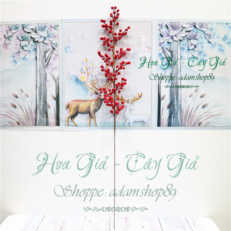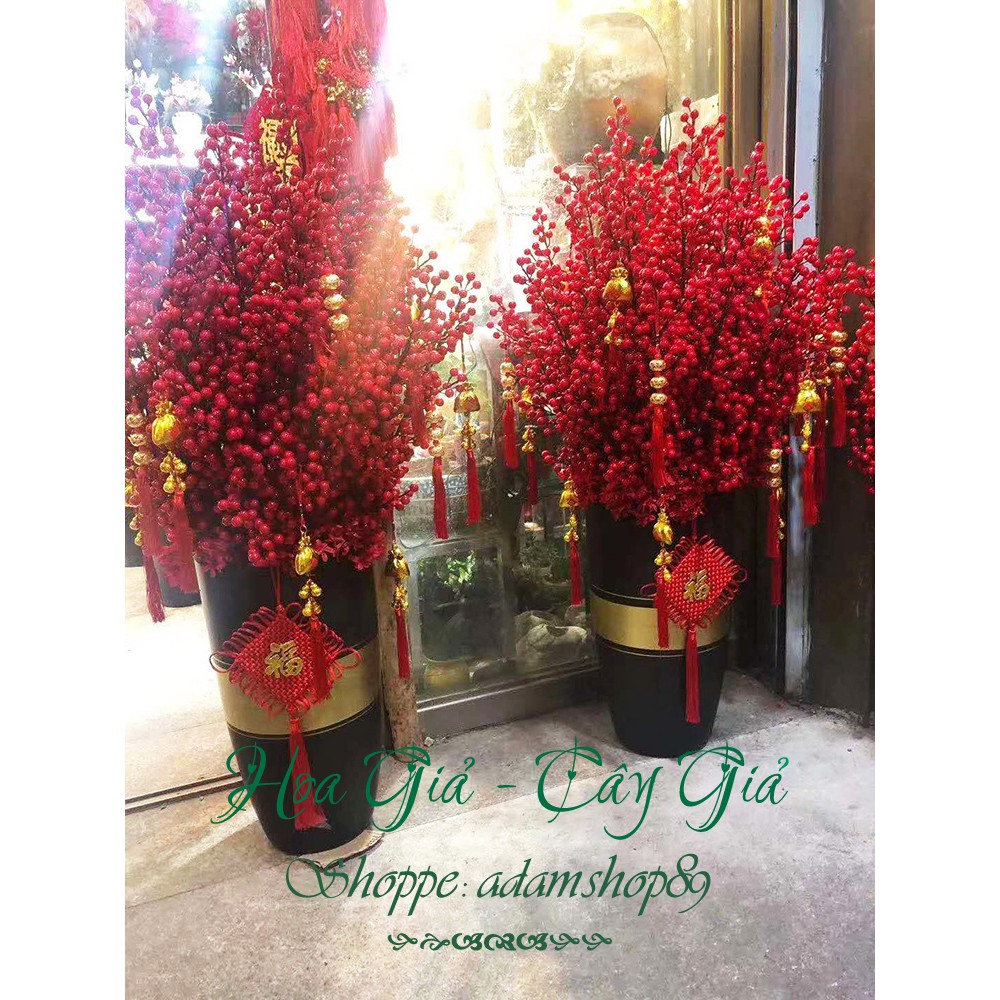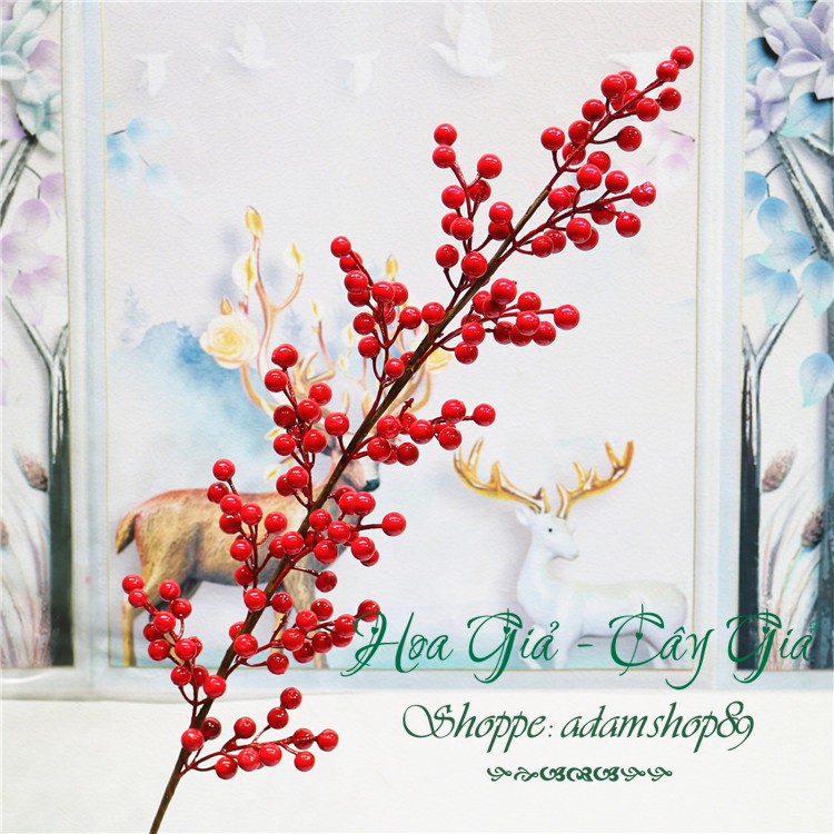 Chùm quả Đào Đông Đỏ với màu đỏ khoe sắc rực rỡ mang đến nhiều may mắn cho ngôi nhà của bạn đặc biệt là những dip đông về ngày tết, với 1 chậu quả đào đông giả trong nhà gia chủ sẽ gặp rất nhiều may mắn hihi.* giá trên là giá 1 cành: