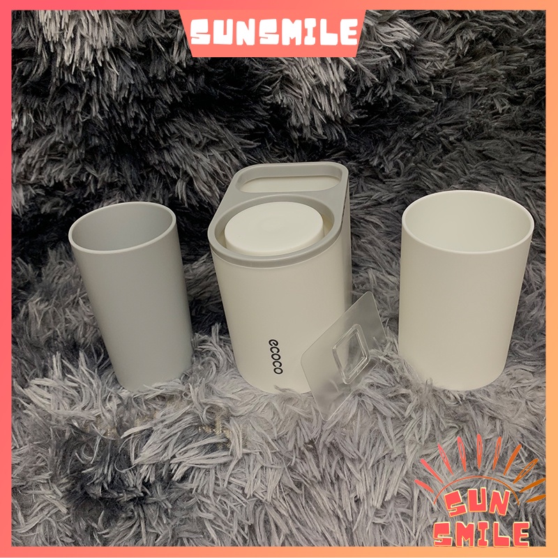 Giá cốc đôi ECOCO đựng bàn chải và kem đánh răng - SUN SMILE - kèm bộ nhả kem cao cấp, tiện lợi