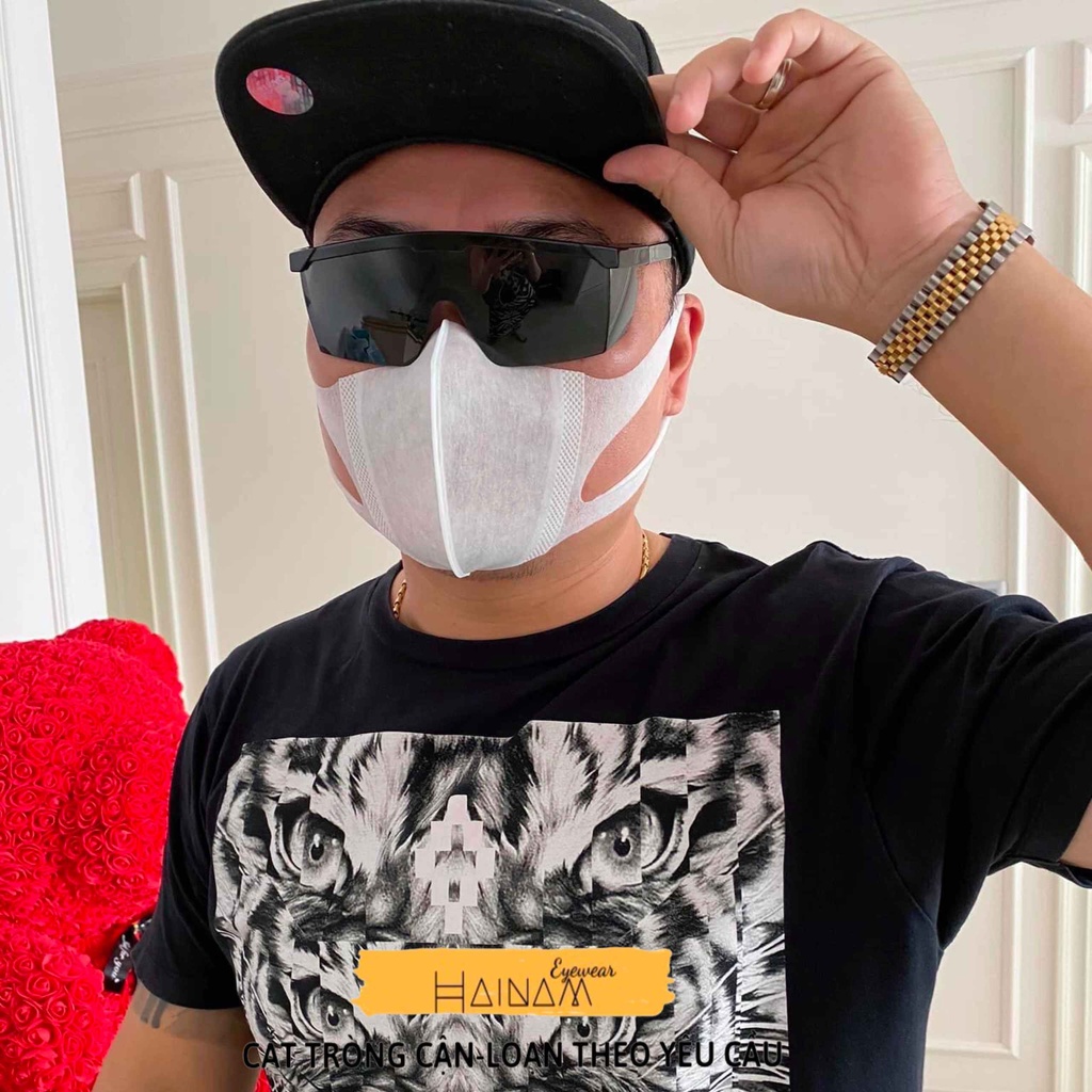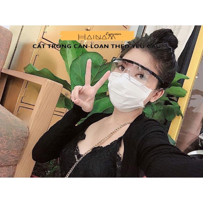 - Chất liệu: Polycarbonate trong suốt bền đẹp, chống nhiệt, chống va đập mạnh, không gây mỏi mắt khi đeo.