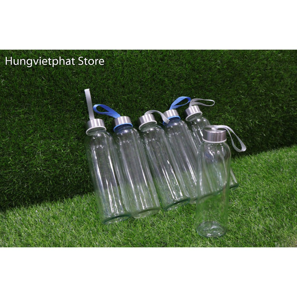 [Giá cực sốc] - Combo 5 chai đựng nước thủy tinh HVP - Bình thủy tinh trơn có dây 350ml