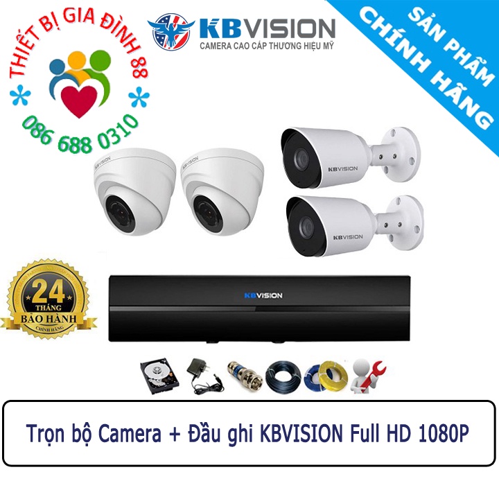 ✅Trọn bộ 1-4 camera KBVISION Full HD 1080p kèm Ổ cứng