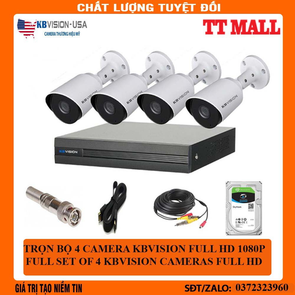 [Giá cực sốc]Trọn bộ 4 camera giám sát KBVISION Full HD 1080p kèm HDD 500G + 60m dây liền nguồn