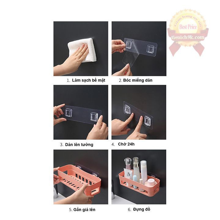 • -Đóng Gói: kệ nhựa + 1 miếng dán tường đôi chữ U