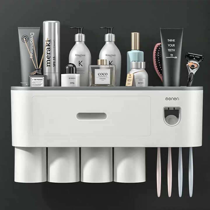 Giá Để Bàn Chải Đánh Răng Đa Năng Loại 4 Cốc Gắn Tướng Nhà Tắm MENEN HD00014