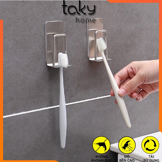 * Giá Để Bàn Chải Đánh Răng Inox Trong Phòng Tắm, Móc Treo Đồ Đa Năng, Tiện Dụng, Không Khoan Đục, Sử Dụng Miếng 3M Dán Tường Siêu Dính. TakyHome* Mô tả sản phẩm: