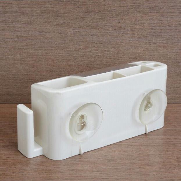 🔹 Giá treo để bàn chải kem đánh răng có thiết kế nhiều ngăn đựng tiện dụng, đồng thời sử dụng một miếng hút khí giúp treo giá lên thành tường.