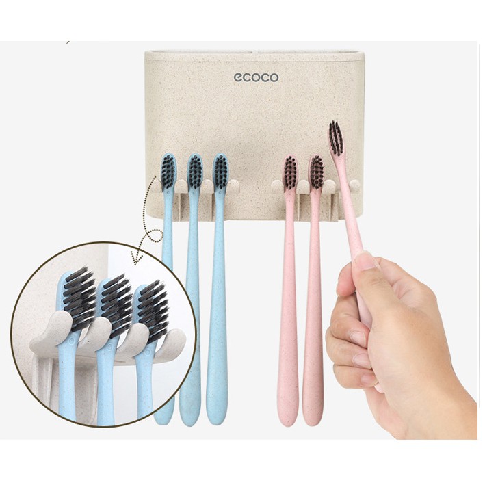 Giá để bàn chải, kem đánh răng 2 cốc kèm nặn kem tự động Ecoco