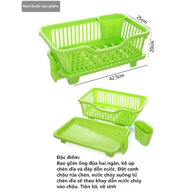 Tên sản phẩm : Giá để bát nhựa HomeStar (thoát nước hông)Công dụng : Giúp cho chén dĩa sau khi rửa có thể nhanh chóng khô ráo đồng thời giữ gìn vệ sinh không gian bếp thật sạch sẽ.