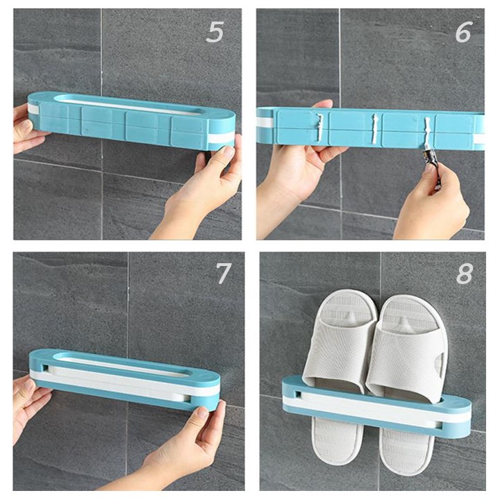 Phù hợp để treo dép đi trong nhà tắm hoặc giầy dép đi trong nhà nơi sau cánh cửaGiá có thể gập gọn khi không để giầy dép