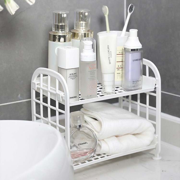 – 2 tầng để đồ dạng đan lưới giúp cho đồ vật luôn khô ráo sạch sẽ khi đặt trong phòng tắm, nhà bếp