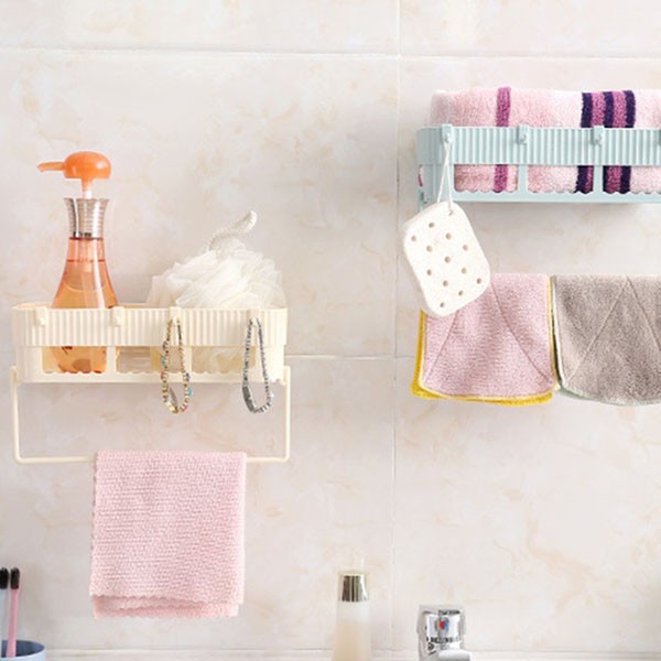 🍀 Kệ chữ nhật hút chân không để đồ dùng trong nhà vệ sinh kèm giá treo khăn lau, bông tắm. Thiết kế quá thông minh với các móc treo xung quanh giúp treo đồ dùng quá tiện dụng.