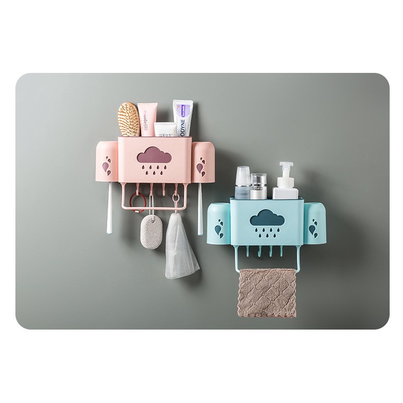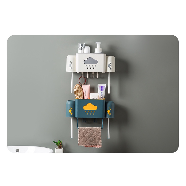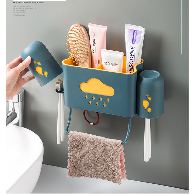 Giới thiệu Giá Để Đồ Đựng Bàn Chải Kem Đánh Răng + 2 Cốc Phòng Tắm Dán Tường Thông Minh