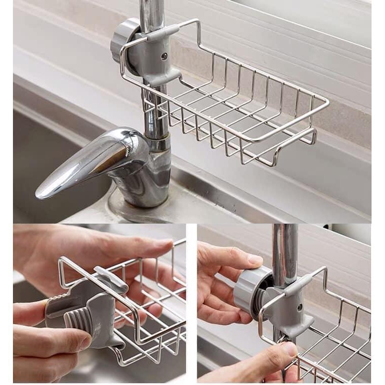 Làm sạch và giữ vệ sinh cho sen vòi cũng như chậu rửa bát là những công việc hàng ngày cần phải làm để tránh được những vi khuẩn có hại ảnh hưởng tới sức khỏe cả gia đình. Giá để đồ inox cài cạnh vòi nước rửa bát nhà tắm chính là bí quyết giúp cho khu vực bếp luôn khô ráo sạch sẽ và gọn gàng.Giá để đồ thông minh kẹp vào vòi bồn rửa bát hoặc nhà tắm cực kì tiện lợi. Kẹp vào vòi hình tròn không cần dùng khoan vít rất tiện lợi và cơ động