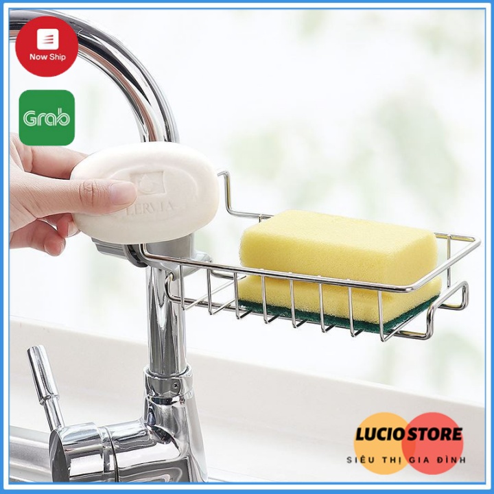 Giá để đồ inox cài cạnh vòi nước rửa bát nhà tắm tiện lợi