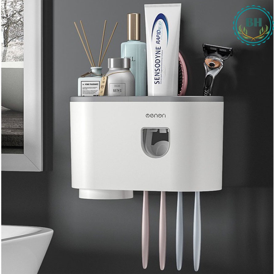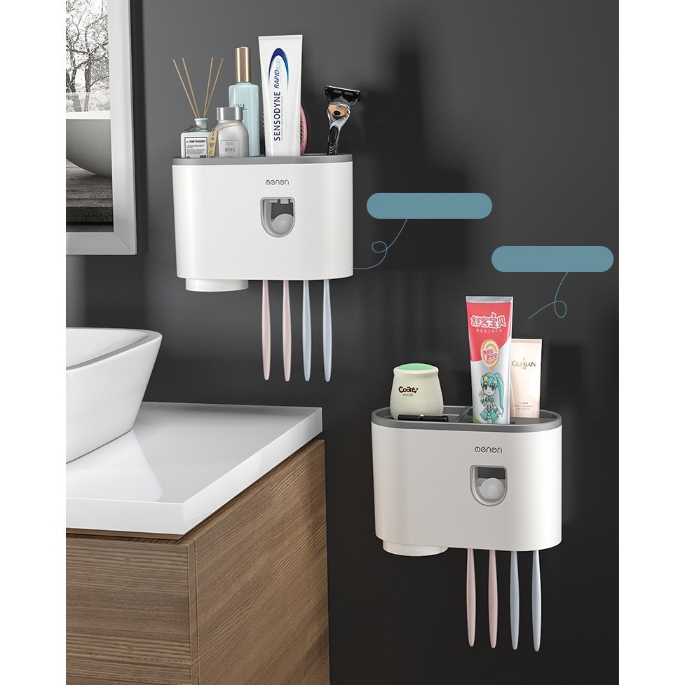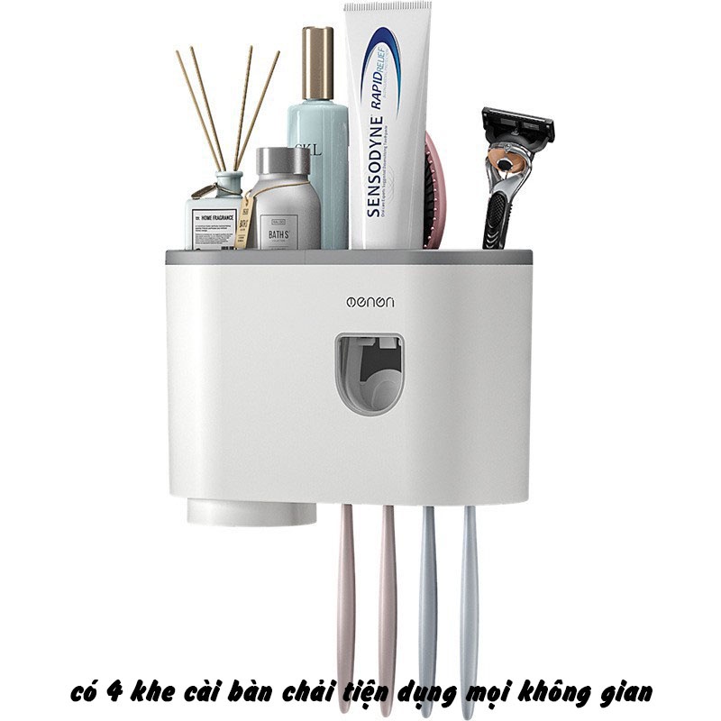 Giá để Đồ Nhà Tắm Bộ Nhả Kem tự động cốc hút nam châm ,Kệ để đồ Nhà Tắm có 4 khe đựng Bàn Chải OENON