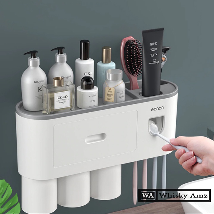 Giới thiệu Giá Để Đồ Phòng Tắm OENON Bộ Nhả Kem Đánh Răng Tư Động 03 Cốc