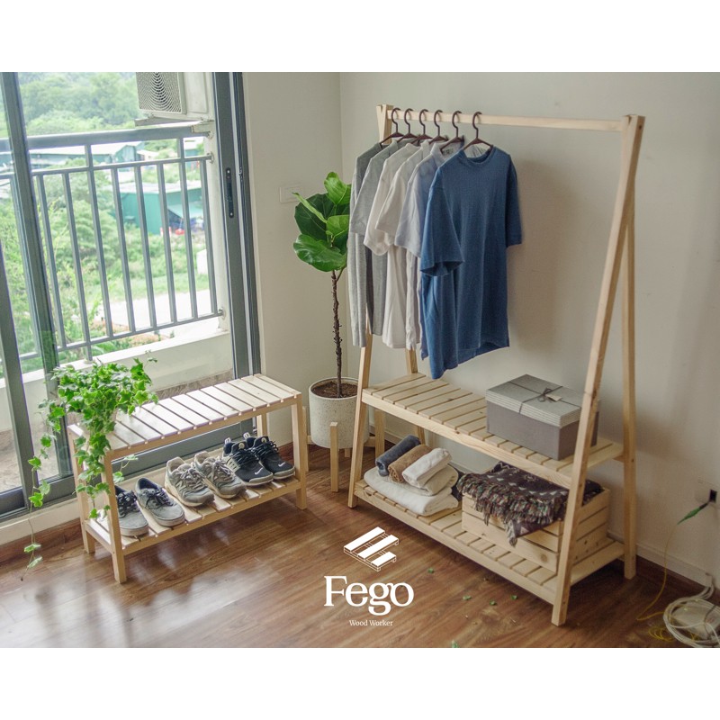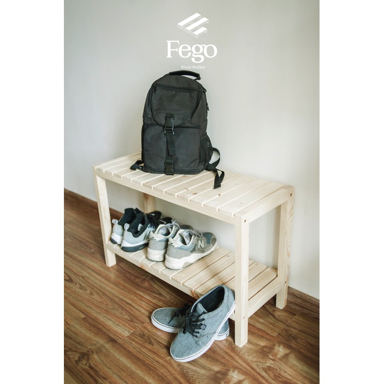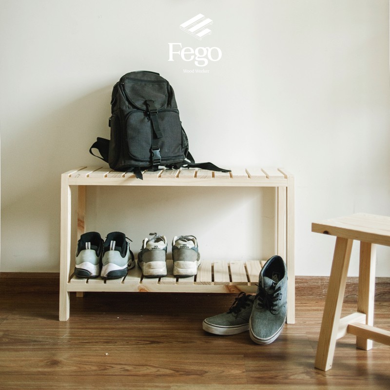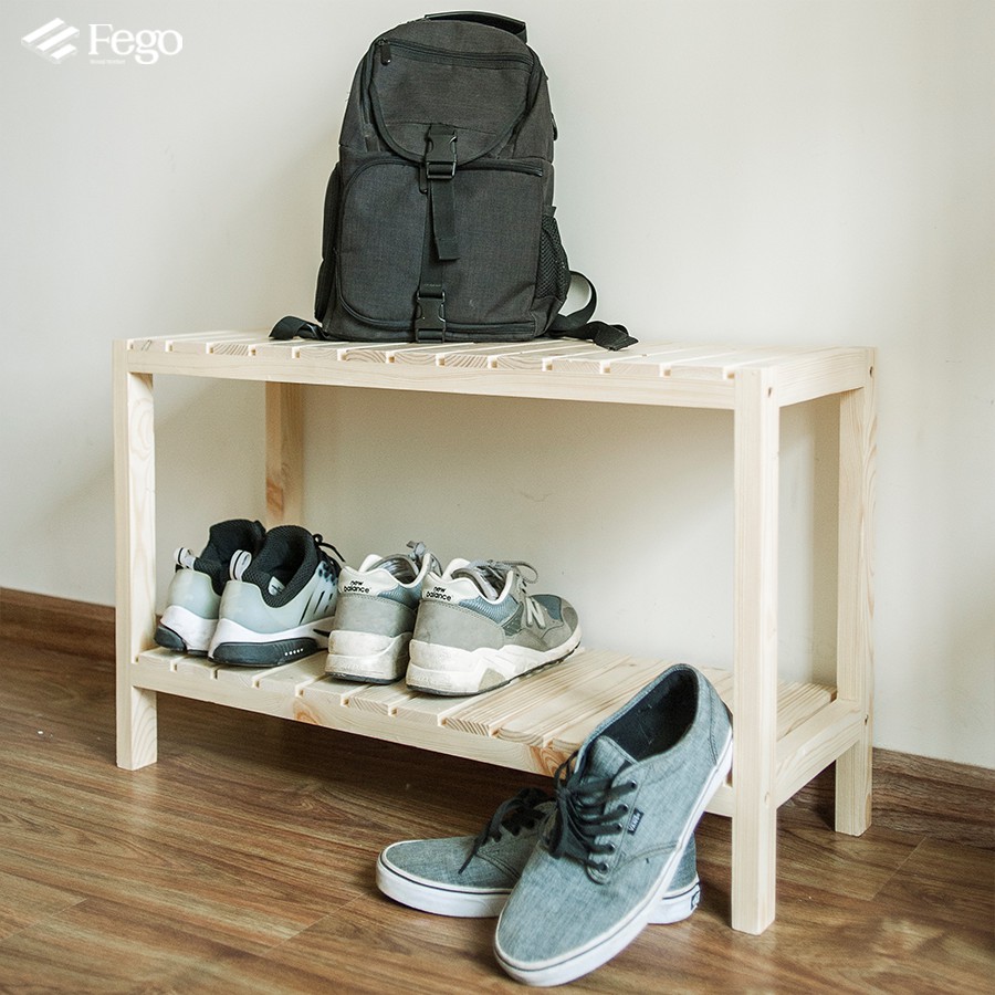 Giới thiệu Giá để giày dép 2 tầng bằng gỗ thông/ Kệ giày gỗ thông tự nhiên 3 tầng
