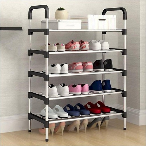 Giá để giày dép 5 tầng khung nhựa thanh hợp kim nhôm chắc chắn (Giao màu ngẫu nhiên)(Freeship HN 150k)