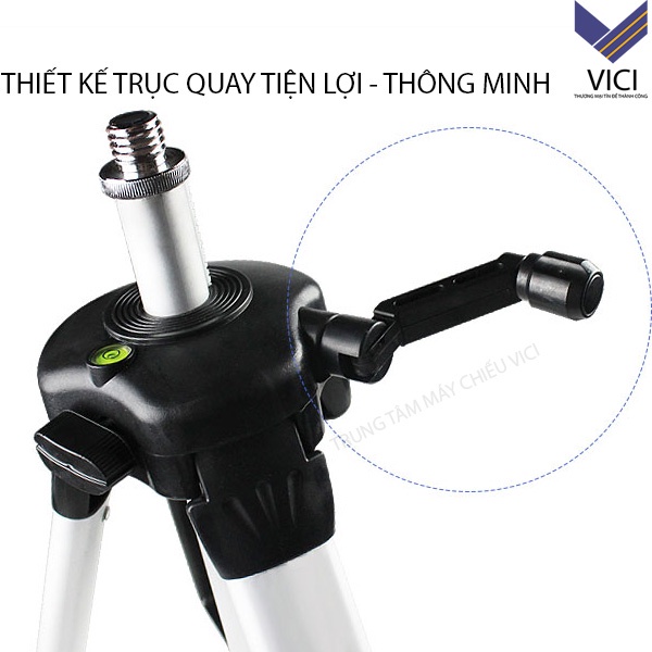 Giá để máy chiếu 3 chân hợp kim nhôm màu đen sang trọng. Tripod có mực nước thăng bằng và tay quay nâng hạ hiện đại.