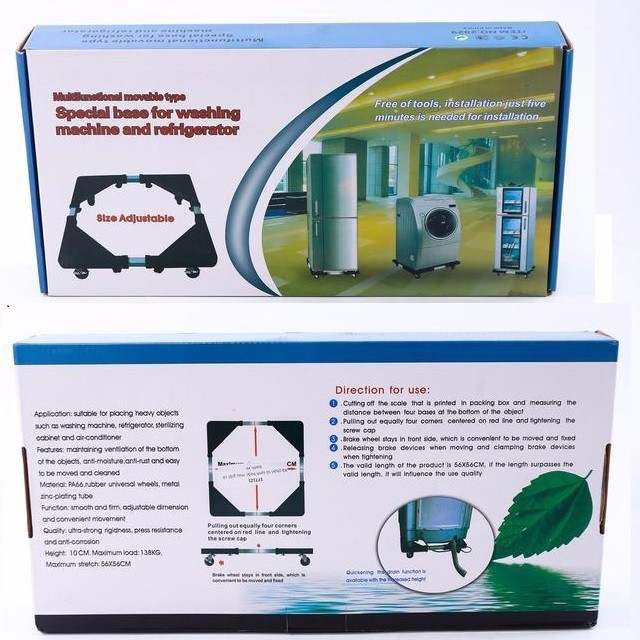 Chân đế có thể thay đổi được cả chiều dài và chiều rộng từ 42-56cm tùy theo kích thước máy giặt, tủ lạnh.