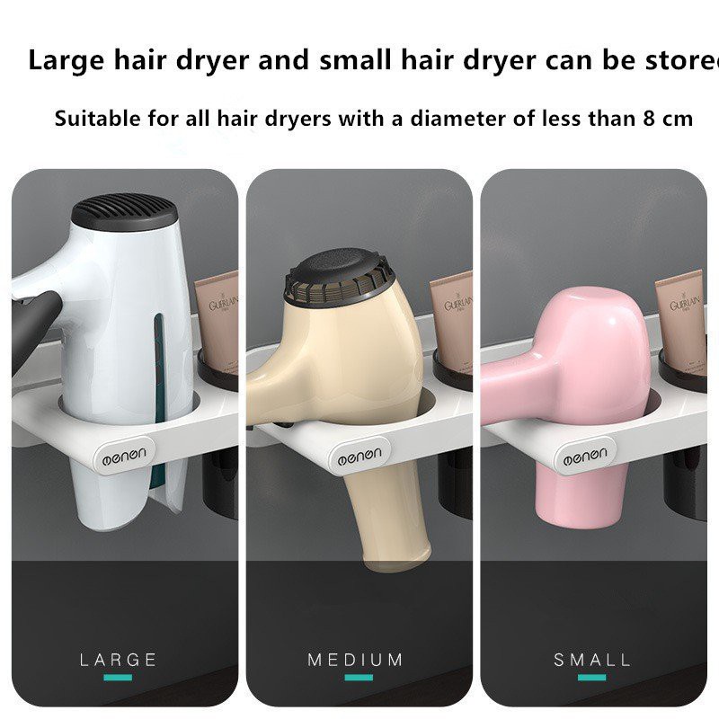 - Kệ có thể chứa tất cả các máy sấy tóc có đường kính miệng nhỏ hơn 8.5cm