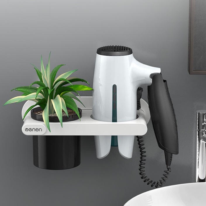 Giá Để Máy Sấy Tóc Oenon Chính Hãng, Kệ Treo Đồ Nhà Tắm Dán Tường Có Cốc Đựng Đồ Tiện Lợi - Kèm Miếng Dán