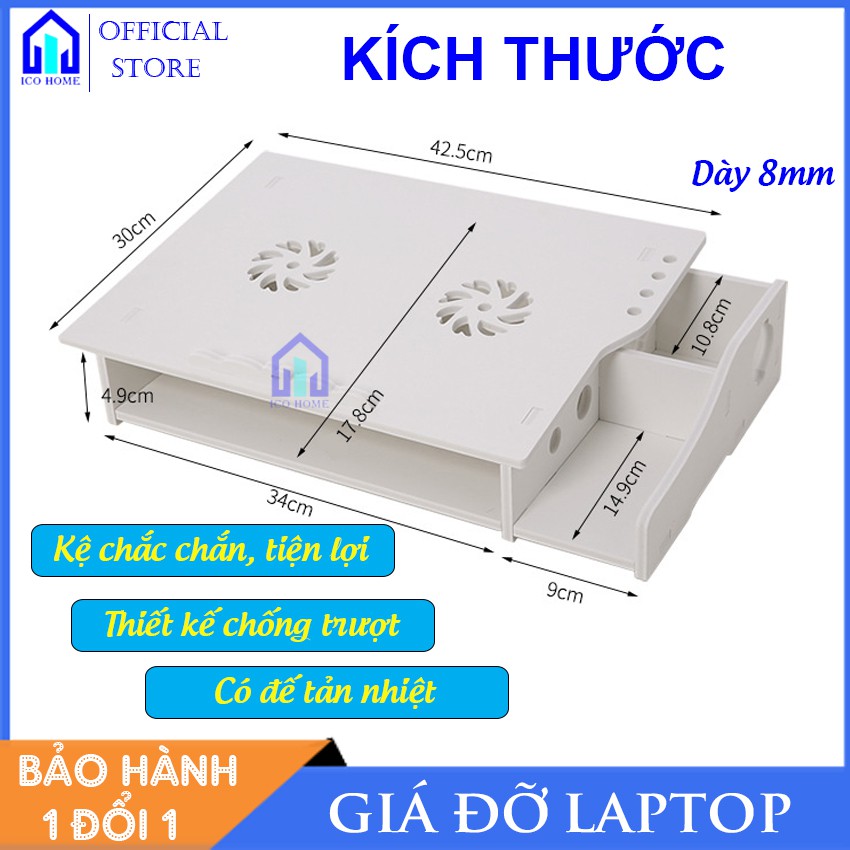Máy tính & Laptop > Phụ Kiện Máy Tính > Bàn Laptop || Giá để máy tính laptop bằng gỗ để bàn có khay đựng bút, đế tản nhiệt - Ico HomeCòn hàng