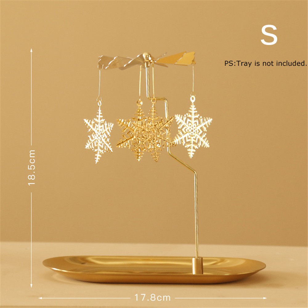 Khay để nến trang trí, có chong chóng xoay nến hình bông tuyết, khí nóng khi nến cháy sẽ làm chong chóng tự xoay dùng trang trí vô cùng đẹp mắt và sang trọngMàu sắc: vàng