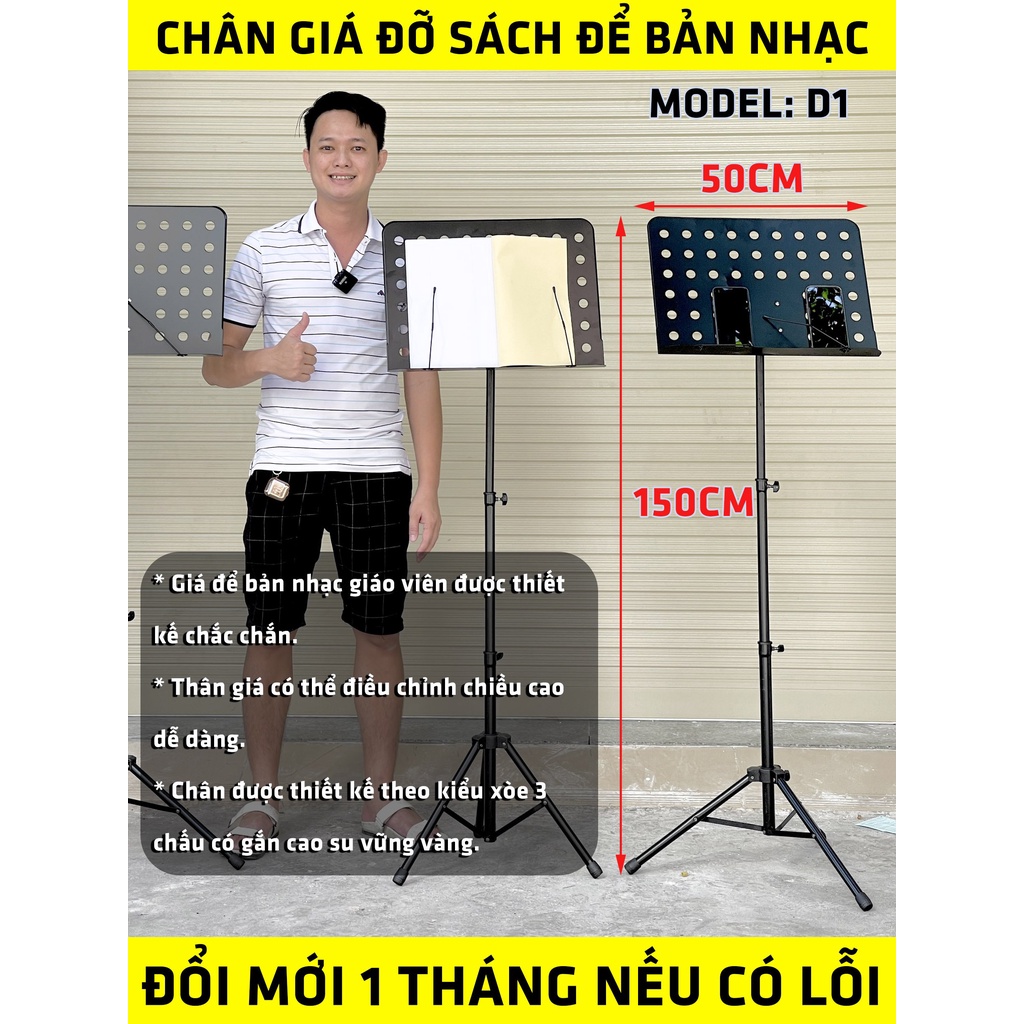 Giá để sách nhạc D1 là loại giá đỡ được thiết kế đặc biệt riêng để sử dụng trong âm nhạc. Được thiết kế bằng kim loại, có độ bền và độ chắc chắn rất cao. Được sử dụng với mục đích dùng làm giá đỡ sách nhạc, giá để sheet nhạc, giá để tập nhạc, giá để sách nhạc đàn organ, giá để bản nhạc organ và rất nhiều công dụng khác nữa.