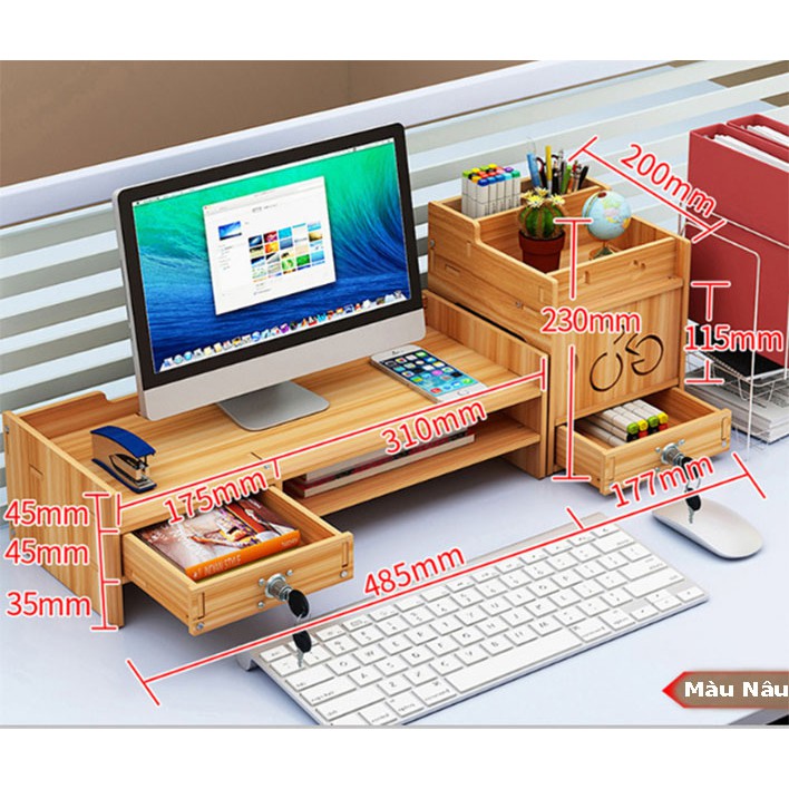 Được làm từ gỗ công nghiệp cao cấp MDF rất dày dặn và chắc chắn cho bạn để các vật dụng lênSản phẩm kệ để bàn vừa giúp bạn sắp xếp gọn gàng ngăn nắp góc học tập , không gian làm việc của bạn một cách gọn gàng hơn