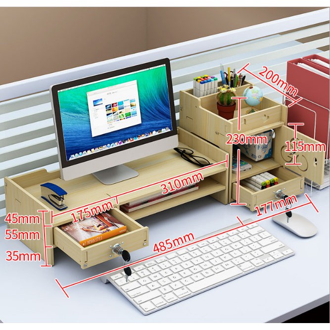 Được làm từ gỗ công nghiệp cao cấp MDF rất dày dặn và chắc chắn cho bạn để các vật dụng lênSản phẩm kệ để bàn vừa giúp bạn sắp xếp gọn gàng ngăn nắp góc học tập , không gian làm việc của bạn một cách gọn gàng hơn