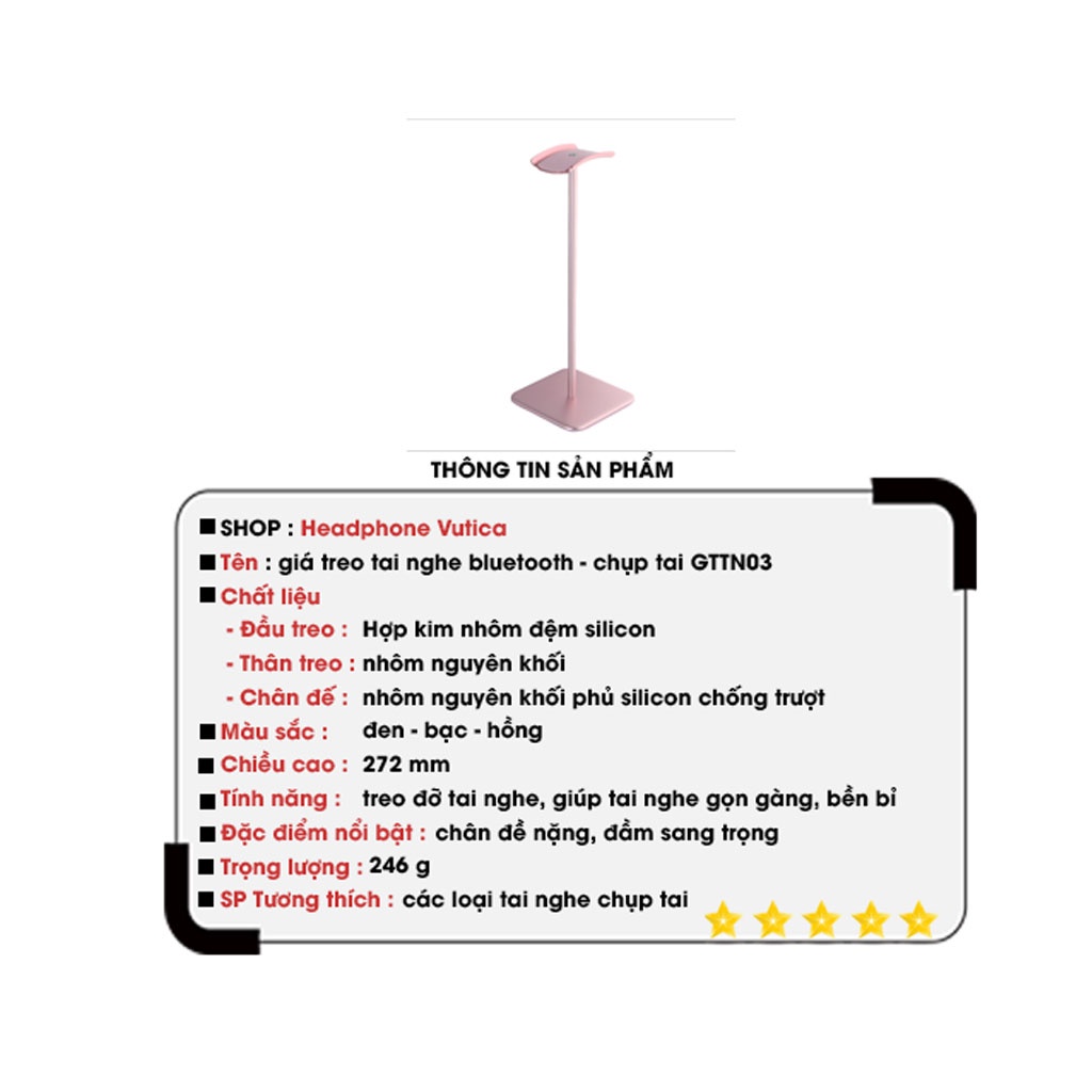 Giới thiệu Giá để tai nghe chụp tai chống trượt alumium không phai màu GTN04 - Headphone stand chiều cao vượt trội 272mm