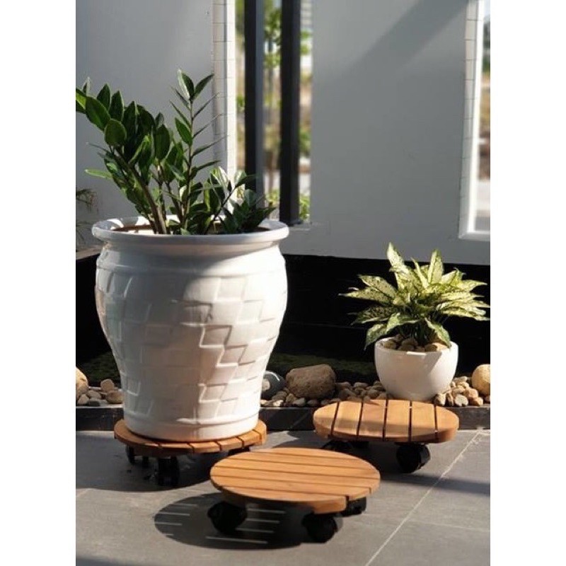 Đế chậu cây có bánh xe Tròn được làm bằng những thanh gỗ chất lượng cao, bền và chắc chắn, bánh xe đúc chịu được trọng lượng đến 80kg. Chịu nhiệt độ cao, chống tia cực tím, chống thấm nước, mạnh mẽ và bề.