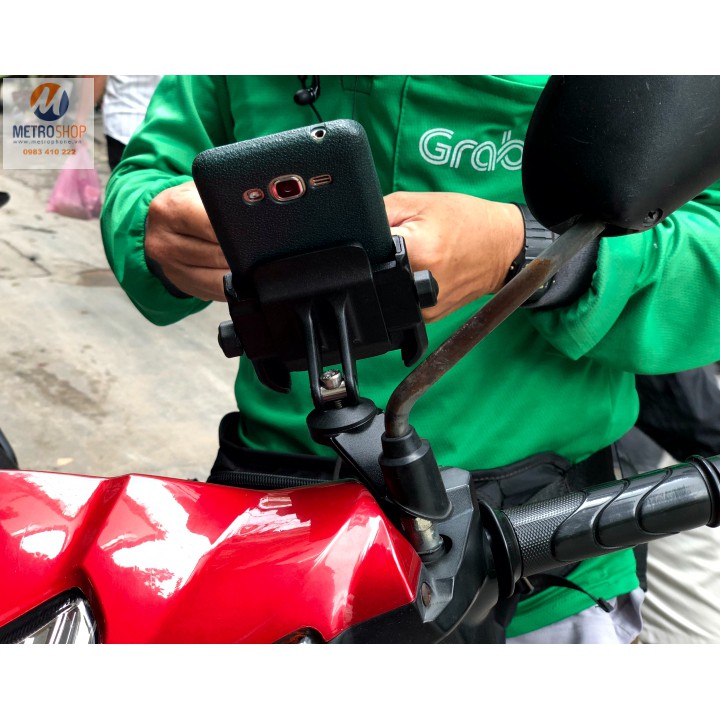 Giá điện thoại gắn chân kính xe máy. Phiên bản mới nhất với chất liệu hoàn toàn bằng kim loại. Giá điện thoại gắn chân kính xe máy. Có thể dùng cho mọi máy điện thoại với kích thước từ 3.5 inch tới 6.5 inch. Một phụ kiện rất cần cho các phượt thủ và các tài xế Uber, Grab, Xe ôm, GoViet … chuyên dùng gắn máy điện thoại làm bản đồ dẫn đường.