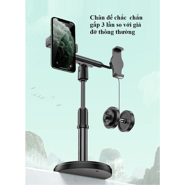 Giá điện thoại kẹp 2 máy để bàn siêu bền bỉ, khung cong chống rung lắc QA561