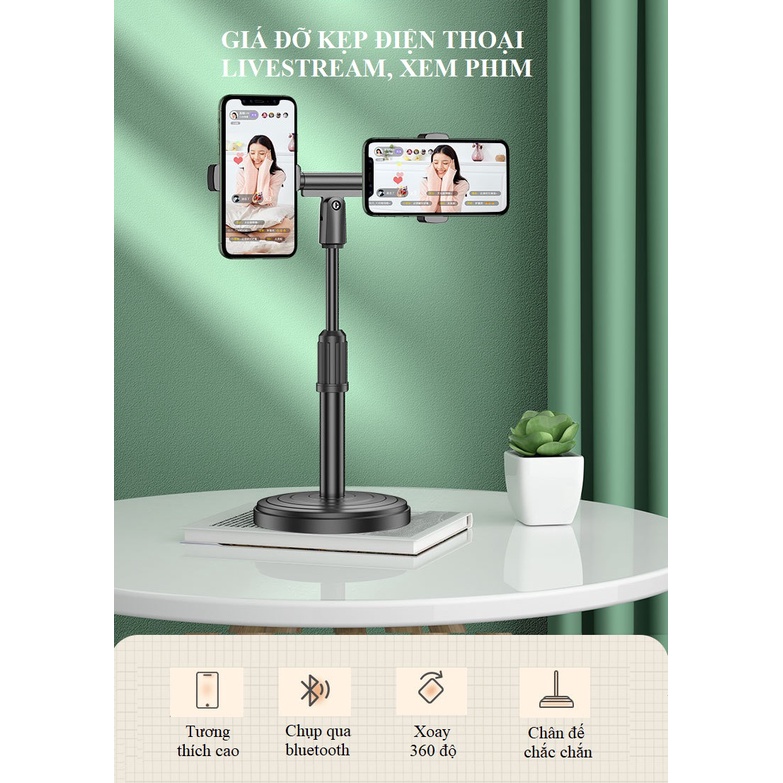 Điện Thoại & Phụ Kiện > Phụ kiện > Phụ kiện selfie > Giá đỡ || Giá điện thoại kẹp 2 máy để bàn siêu bền bỉ, khung cong chống rung lắc AZ51Còn hàng