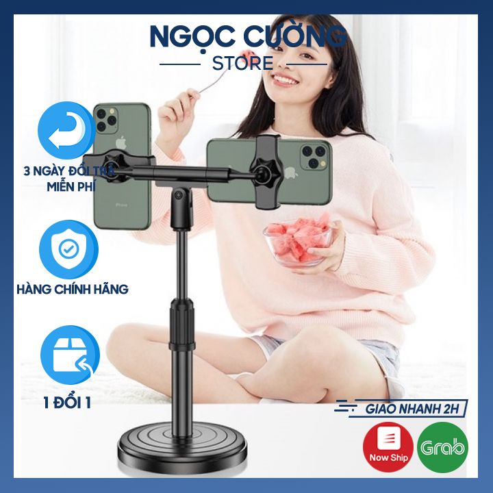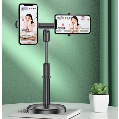 Giá đỡ 2 điện thoại để bàn cao cấp, Kẹp điện thoại livestream quay video tiktok, điều chỉnh cao thấp tiện lợi sử dụng