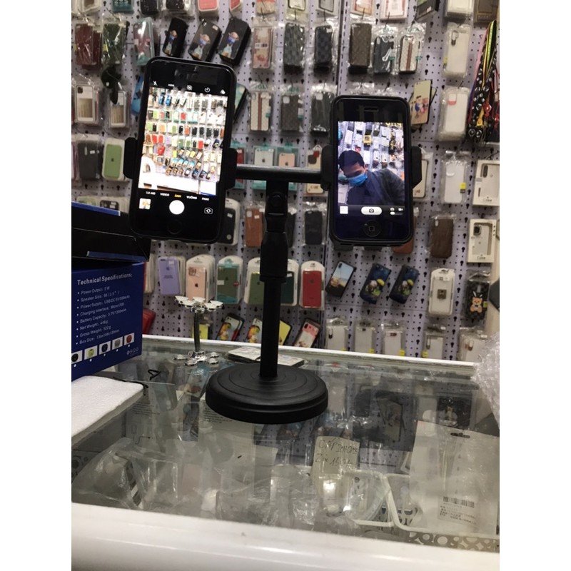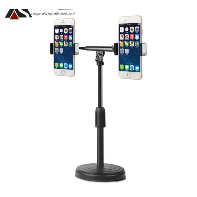 Điện Thoại & Phụ Kiện > Phụ kiện > Phụ kiện selfie > Giá đỡ || Giá đỡ 2 điện thoại, giá kẹp 2 ĐT quay video livestream, để bàn tự điều chỉnh cao thấp, xoay 360 độ tiện dụng thoải máiCòn hàng