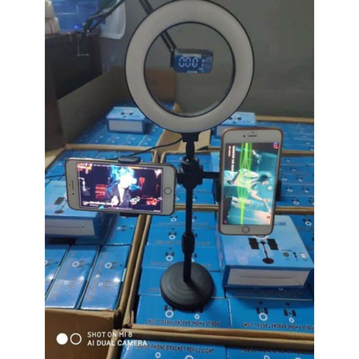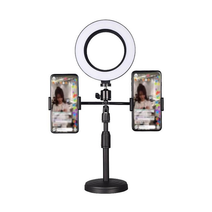 Điện Thoại & Phụ Kiện > Phụ kiện > Phụ kiện selfie > Giá đỡ || Giá Đỡ 2 Điện Thoại Livestream Có Đèn Led, Kẹp Điện Thoại Để Bàn Quay Video Tiktok Có Đèn Led 3 MàuCòn hàng