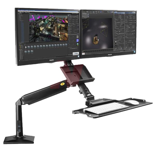 Giá đỡ 2 màn hình máy tính 19-24inch kết hợp khay để bàn phím FC24-2A có thể đứng hoặc ngồi để làm việc rất tiện lợi