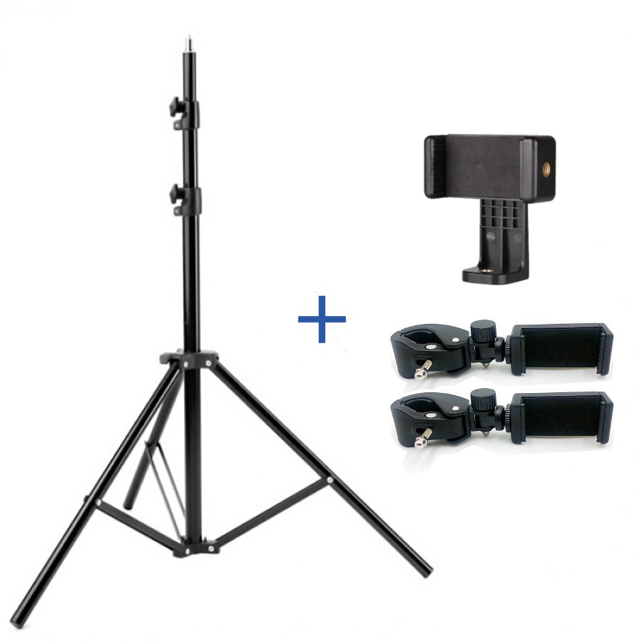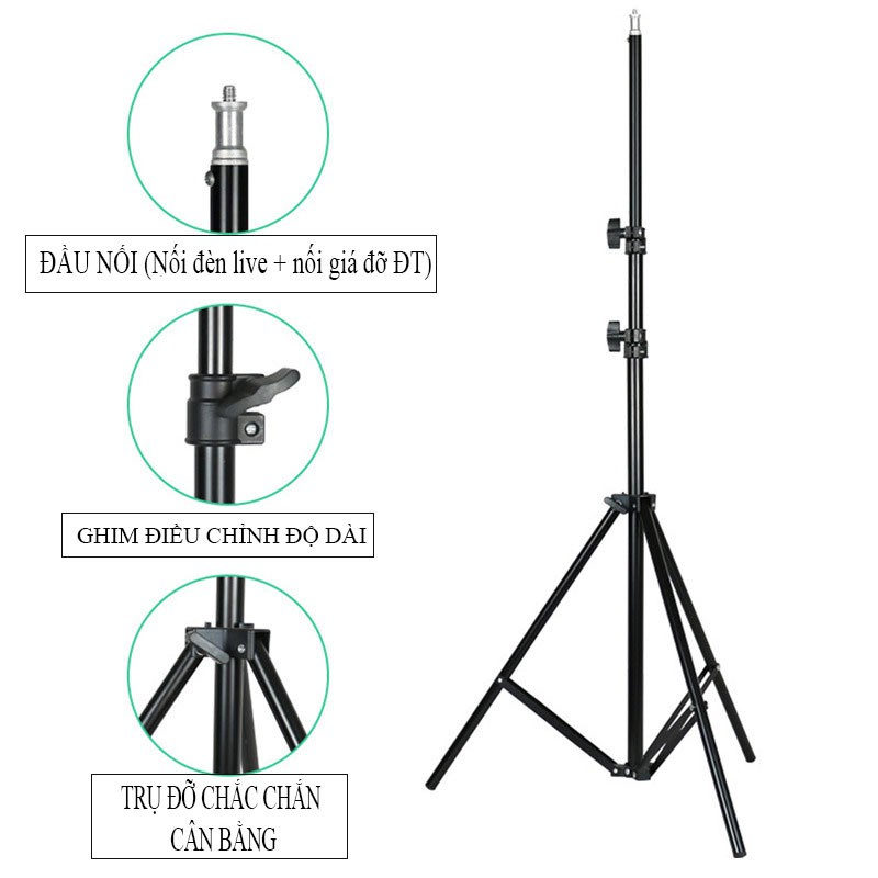 Giá đỡ 3 chân đa năng siêu cao 2 mét gắn đèn led, gắn điện thoại, máy tính bảng hỗ trợ livestream, quay video