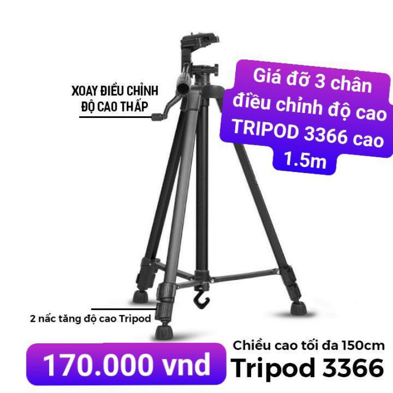 Giá đỡ 3 chân điều chỉnh độ cao TRIPOD 3366 cao 1.5m