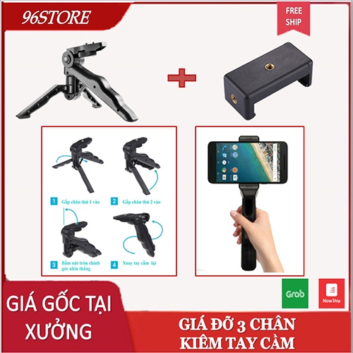 Giá Đỡ 3 Chân Kiêm Tay Cầm Điện Thoại, Camera Gopro Máy Ảnh Có Thể Gập Lại Gọn Nhẹ Tiện Dụng