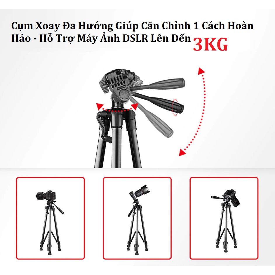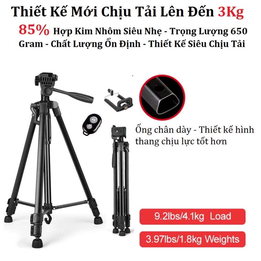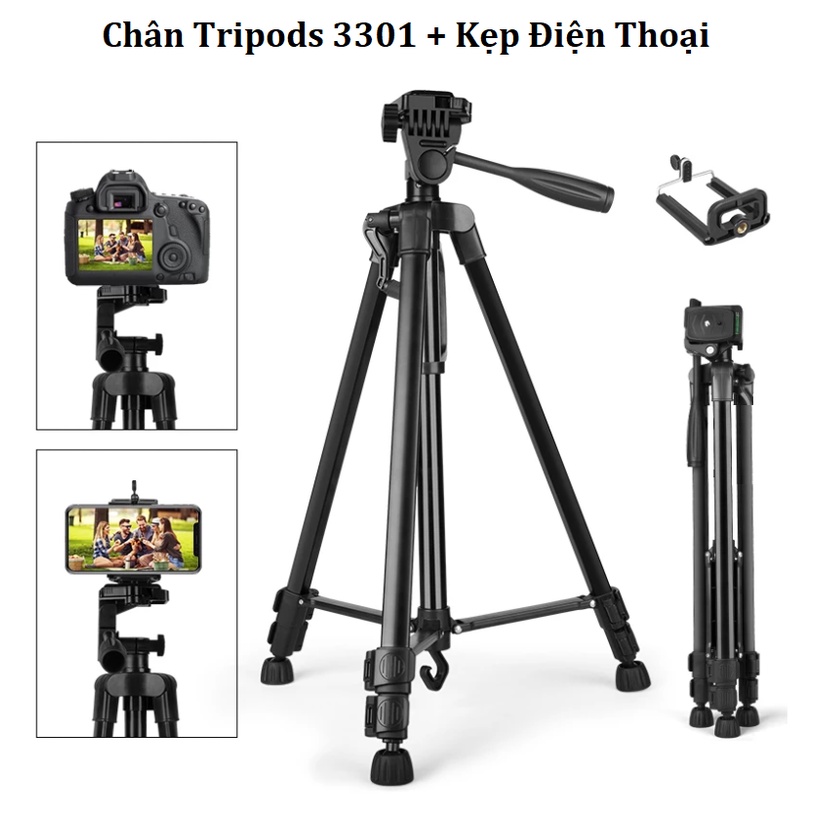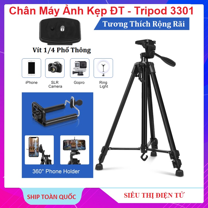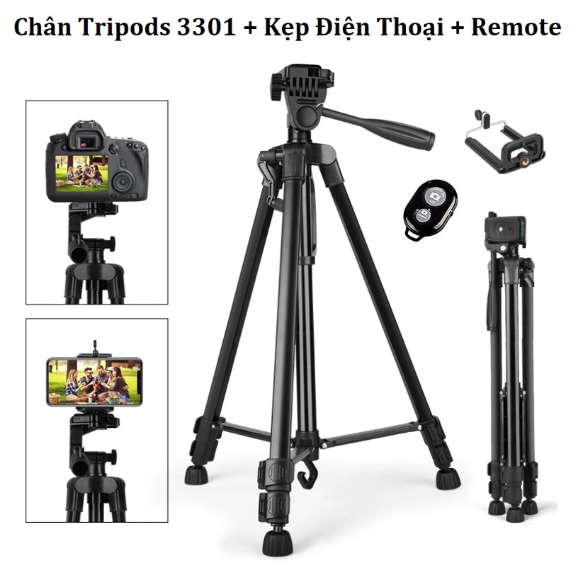 ☘️ Chân Máy Ảnh Điện Thoại, Shop Tặng Remote Điều Khiển Từ Xa - Tripod 3301 - Giá Đỡ Điện Thoại Chụp Ảnh Quay Video - Tiktok - ( Bảo Hành 6 Tháng )✅ Chân giá đỡ điện thoại, máy ảnh Tripod 3301 có chiều cao 140cm, thiết kế cứng cáp, Tripod 3301 là phụ kiện hỗ trợ quay phim, chụp ảnh chuyên nghiệp, có tích hợp tay cầm rất chắc chắn hỗ trợ quay video rất tiện lợi, phù hợp quay review, livestream, Vlog, Youtuber.., Tripod 3301 được kết cấu hợp kim nhôm nhẹ nhưng vẫn cho sức chịu tải tốt, phù hợp với các bạn đi du lịch, đi phượt…cầm tay gọn nhẹ hoặc bỏ vào balo cũng tiện lợi.