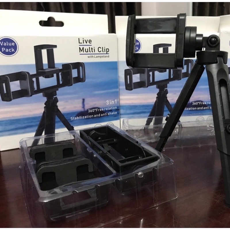 Giá Đỡ 3 ĐT 3 Chân 3in1 Xoay 360 Độ Live Multi Clip bảo hành 6 tháng