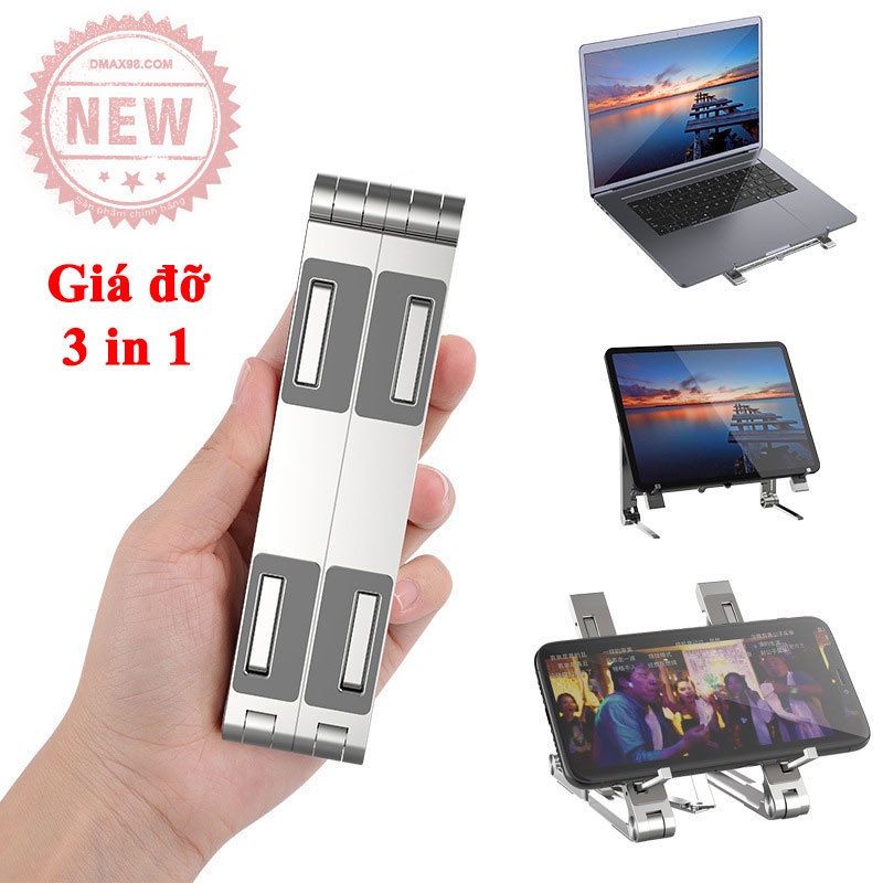 Giá đỡ 3 in 1 cho laptop, máy tính bảng, điện thoại gấp gọn