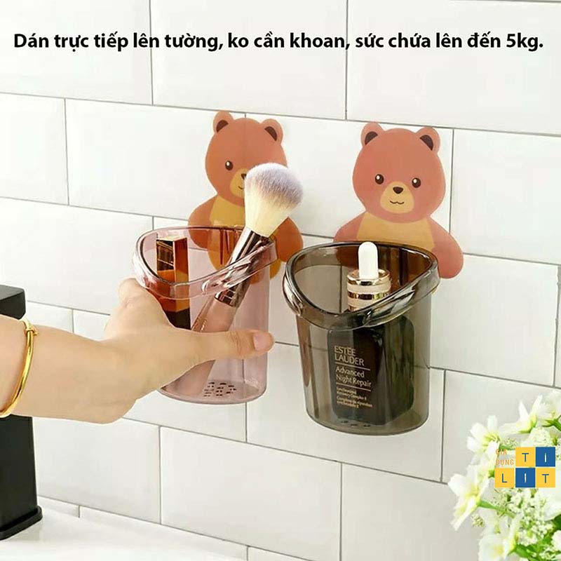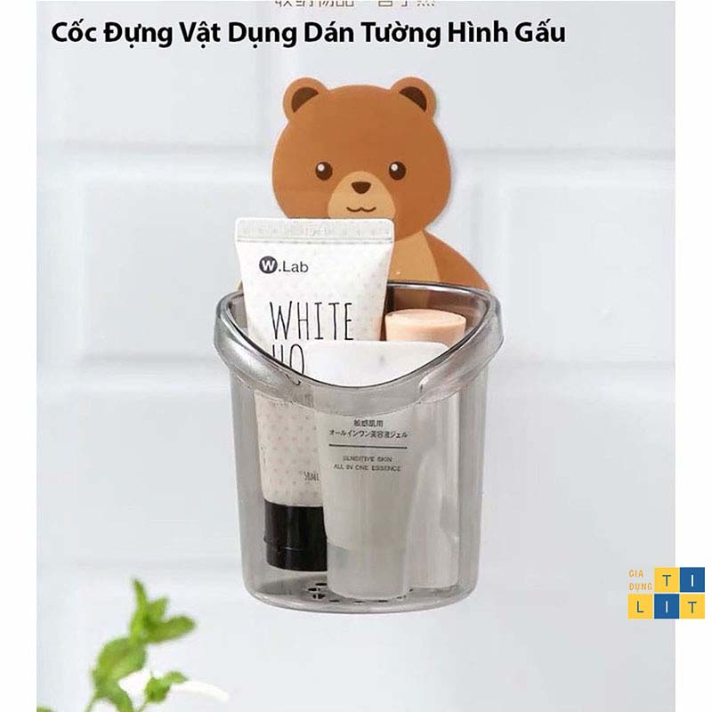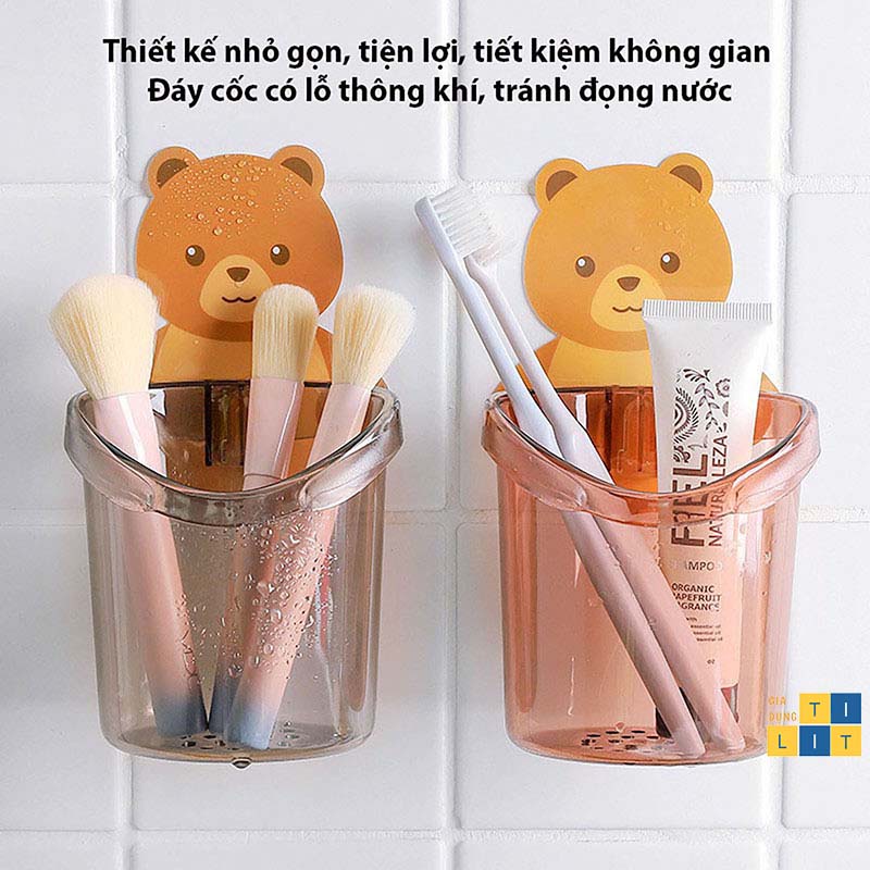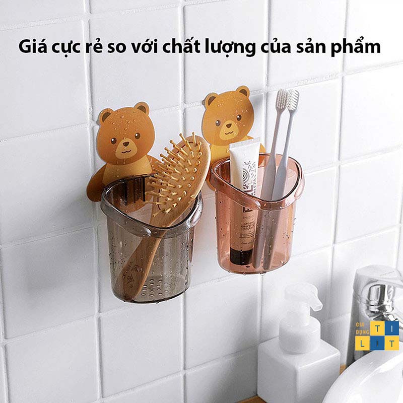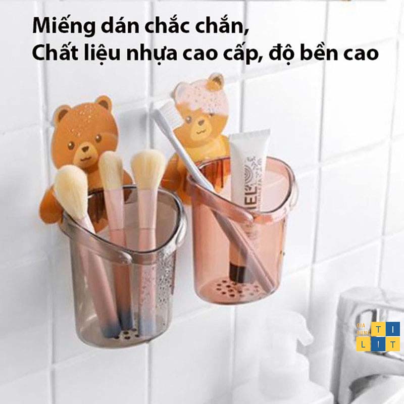 Giá Đỡ Bàn Chải Đánh Răng - Cốc Đựng Vật Dụng Dán Tường Hình Gấu Dễ Thương Mẫu Mới [CỐC GẤU]