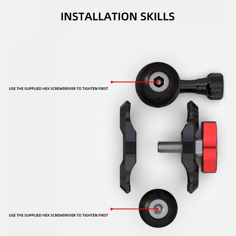 Ứng dụng sản phẩm: Sử dụng một mẫu ốc vít 8MM; mô hình giá đỡ gương được sử dụng cho gương chiếu hậu Lỗ vít ren thuận 8 / 10MM; mô hình cùm kẹp được sử dụng cho đường kính ống 32MM; giá đỡ máy ảnh thể thao phù hợp với GoPro / DJI / Insta360 / ezviz fluorite / mountain Camera thể thao từ các thương hiệu như Dog /Yi