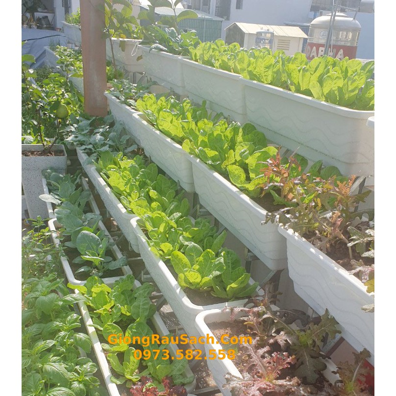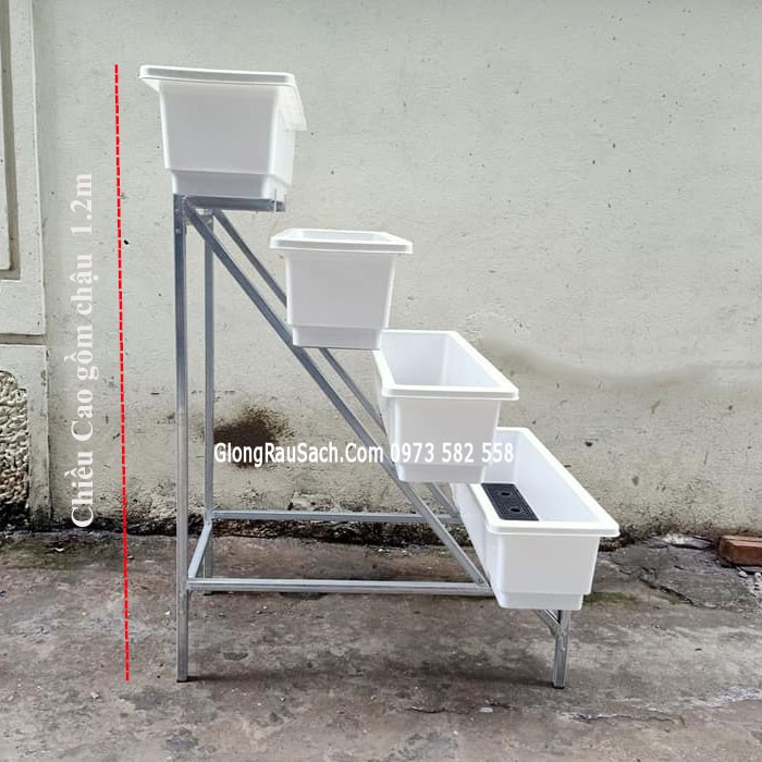 Kệ Trồng Rau sạch đặt sân thượng hay ban công. Kệ được đánh giá cao bởi mặt hàng chúng tôi bán đc 4 năm.Kệ cao 1m, chân roẵng ra 80cm, kệ đặt vừa chậu 67*24*20cm